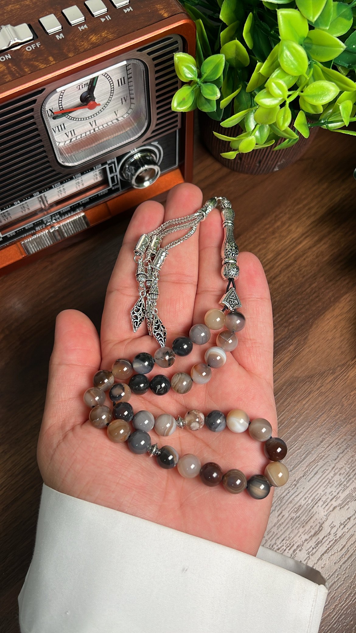 سبحة حجر لابرادوريت هي اختيارك المثالي للتميز والفخامة، إذ إنها تمتاز بتصميمها الرائع الذي يحمل لونًا مميزًا وملفتًا للأنظار، تتيح لك هذه السبحة التمتع بأناقة لا مثيل لها، فكل حبة من الخرز تُعبّر عن الجودة الفائقة بفضل الملمس الناعم والوزن الثقيل الذي يجعلها راقية ومريحة في نفس الوقت.