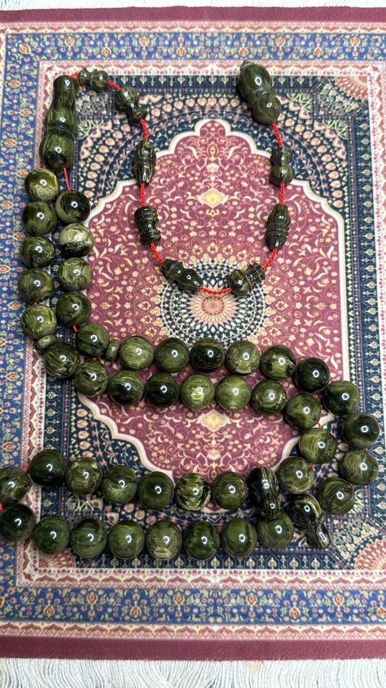 تُعد سبحة فاتوران عشبي مموج تحفة فنية تجمع بين نعومة خامة الفاتوران وجودة الخراطة اليدوية التي تبرز جمال كل خرزة بتفاصيل دقيقة، مما يجعلها خيارًا مميزًا يعكس الذوق الرفيع والأناقة البسيطة.