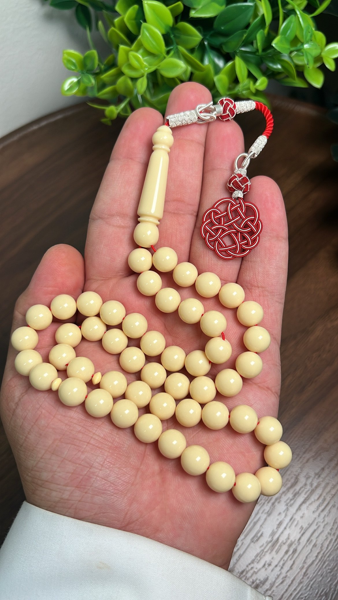 يتسم مسباح بكلايت طربزونة كريمي مكحّل بتصميمها الفريد الذي يجمع بين اللون الكريمي المكحل الراقي والفخامة المتمثلة في الطربزونة الفضية عيار 1000، مما يمنحها هذا التناغم بين الألوان لمسة مميزة وفاخرة، بينما توفر لك خامة البكلايت الناعمة جودة عالية وسهولة في الاستخدام، وقد تم تصميم هذه السبحة لتكون الخيار المثالي لمن يبحث عن منتج يجمع بين الجمال، الجودة، والسعر المناسب، بالإضافة إلى أنها تأتي بتغليف فاخر يجعلها مناسبة تمامًا للإهداء.