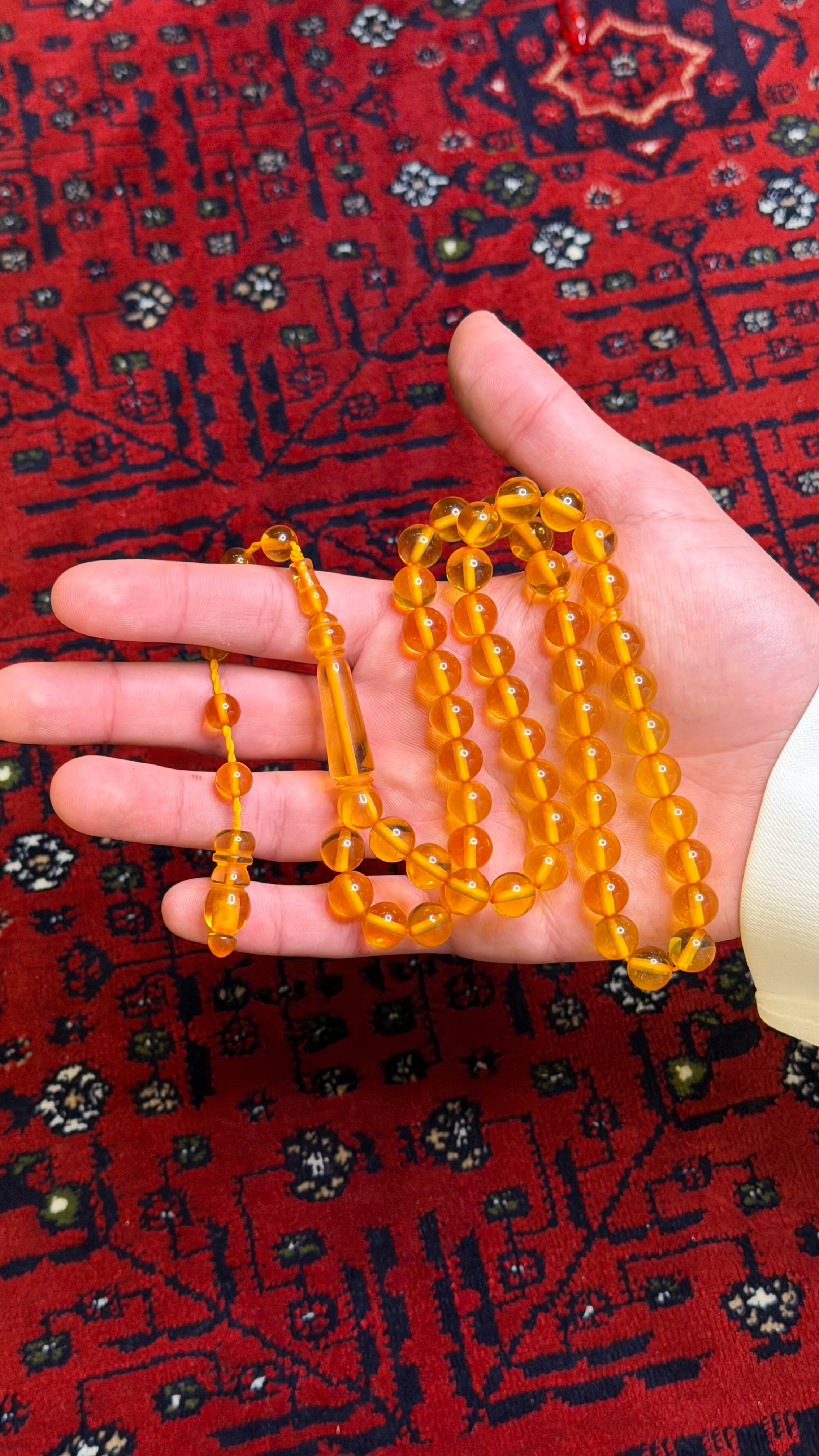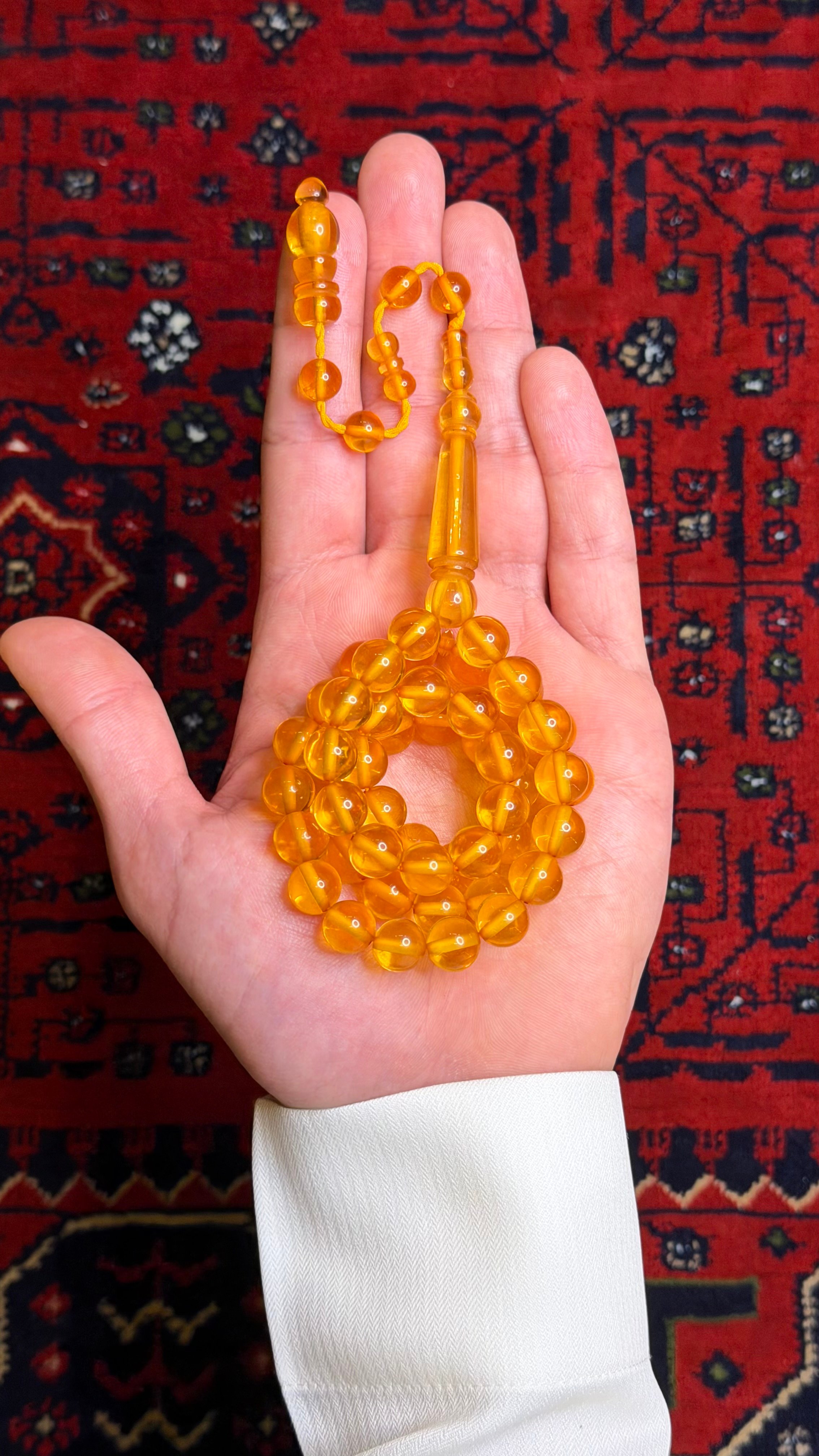 استمتع بأناقة لا تُضاهى مع مسباح بكلايت عسلي الذي يجمع بين جمال اللون العسلي الفاتح وروعة التصميم الكلاسيكي، حيث يمتاز بـ خامة عالية الجودة وملمس ناعم يجعلانه الخيار المثالي للاقتناء أو الإهداء.